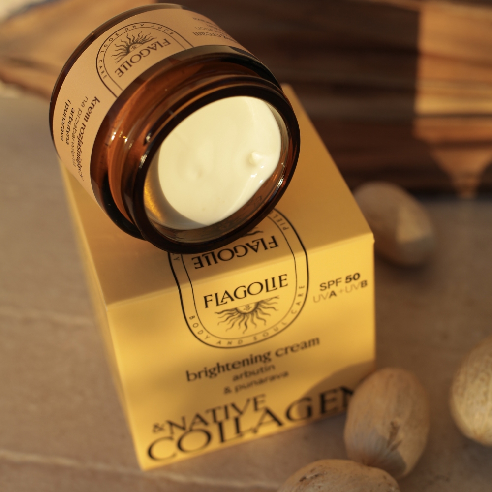 Odkryj sekret cery pełnej blasku, która każdego dnia emanuje zdrowiem i młodzieńczą energią. Krem do twarzy rozjaśniający SPF 50 UVA + UVB od Flagolie to prawdziwa perła łącząca niezawodną ochronę z rytuałem rozświetlającym. Wyobraź sobie aksamitną formułę, która niczym niewidzialny woal chroni skórę przed słońcem, jednocześnie niwelując przebarwienia i wyrównując koloryt. Dzięki mocy kolagenu i arbutyny, produkt marki Flagolie przywraca twarzy elastyczność i jedwabistą gładkość. Krem błyskawicznie się wchłania bez bielenia, stanowiąc idealną bazę pod makijaż. To butikowa pielęgnacja, która sprawia, że Twoja skóra promienieje każdego ranka, zachwycając naturalnym pięknem.