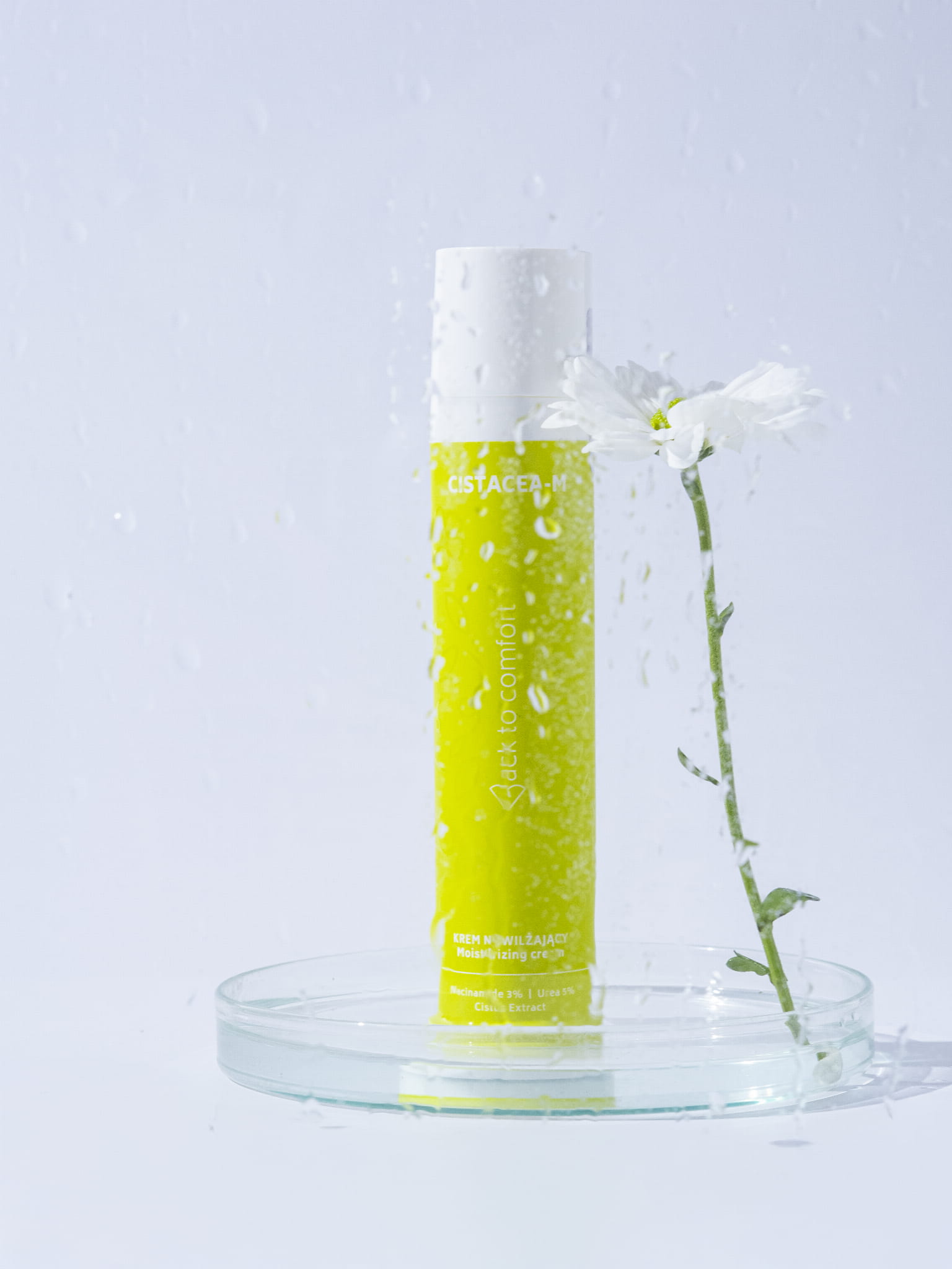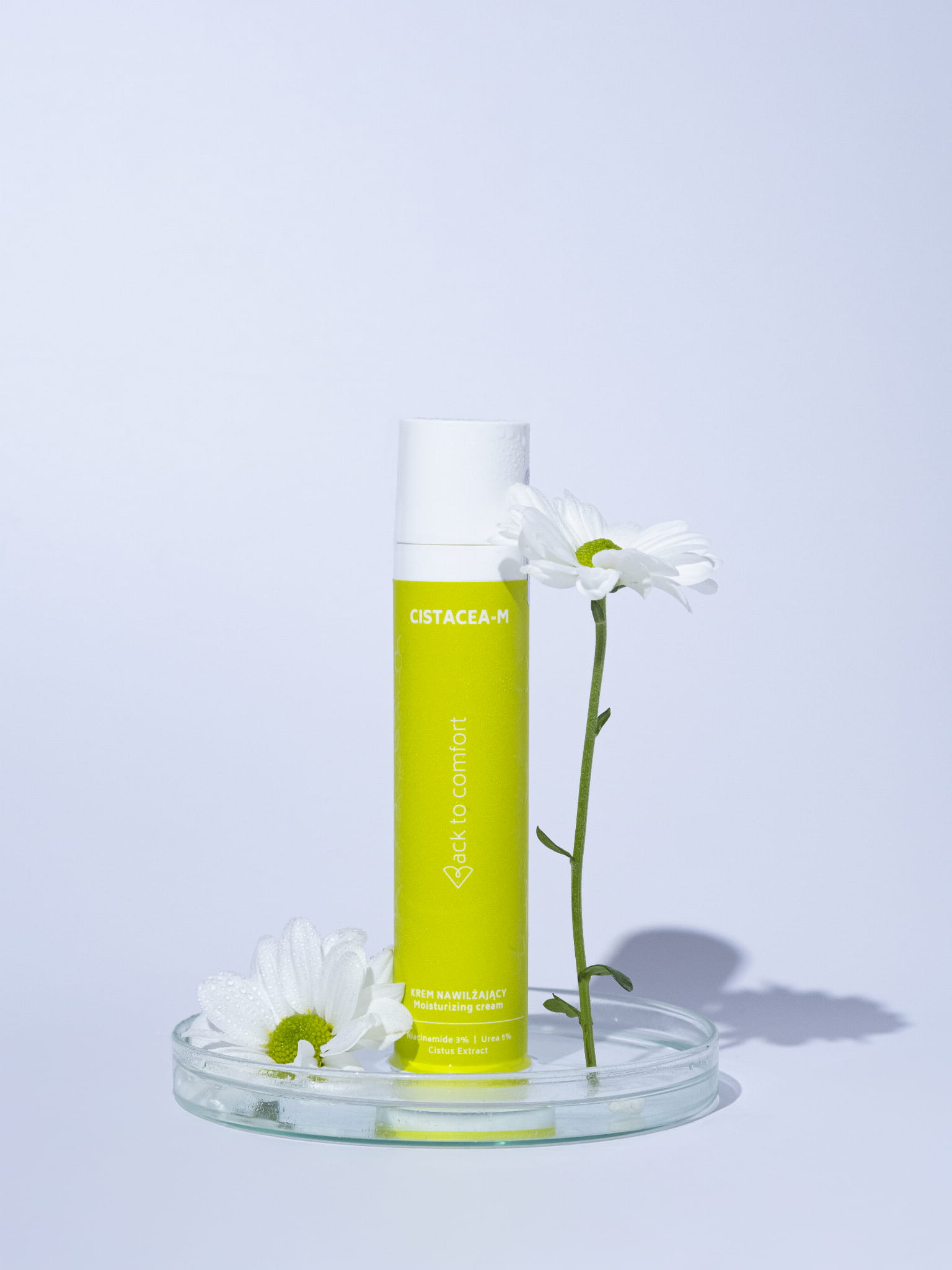Krem nawilżający Cistacea-M to synergia nauki i natury, stworzona z myślą o wymagającej skórze. Serce produktu stanowi naturalny skład, w którym kluczową rolę odgrywa mocznik (5%) – składnik NMF, który wiąże wodę w głębokich warstwach naskórka, oraz niacynamid, który reguluje pracę gruczołów łojowych. Wyjątkowość tego produktu podkreśla autorski ekstrakt z czystka, pozyskiwany metodą upcyclingu w polskim laboratorium. Dzięki zawartości polifenoli i kwasu elagowego, krem wykazuje silne działanie antyoksydacyjne i normalizujące. Całość dopełnia kojący bisabolol oraz witamina B5, które tworzą tarczę ochronną dla Twojej cery.