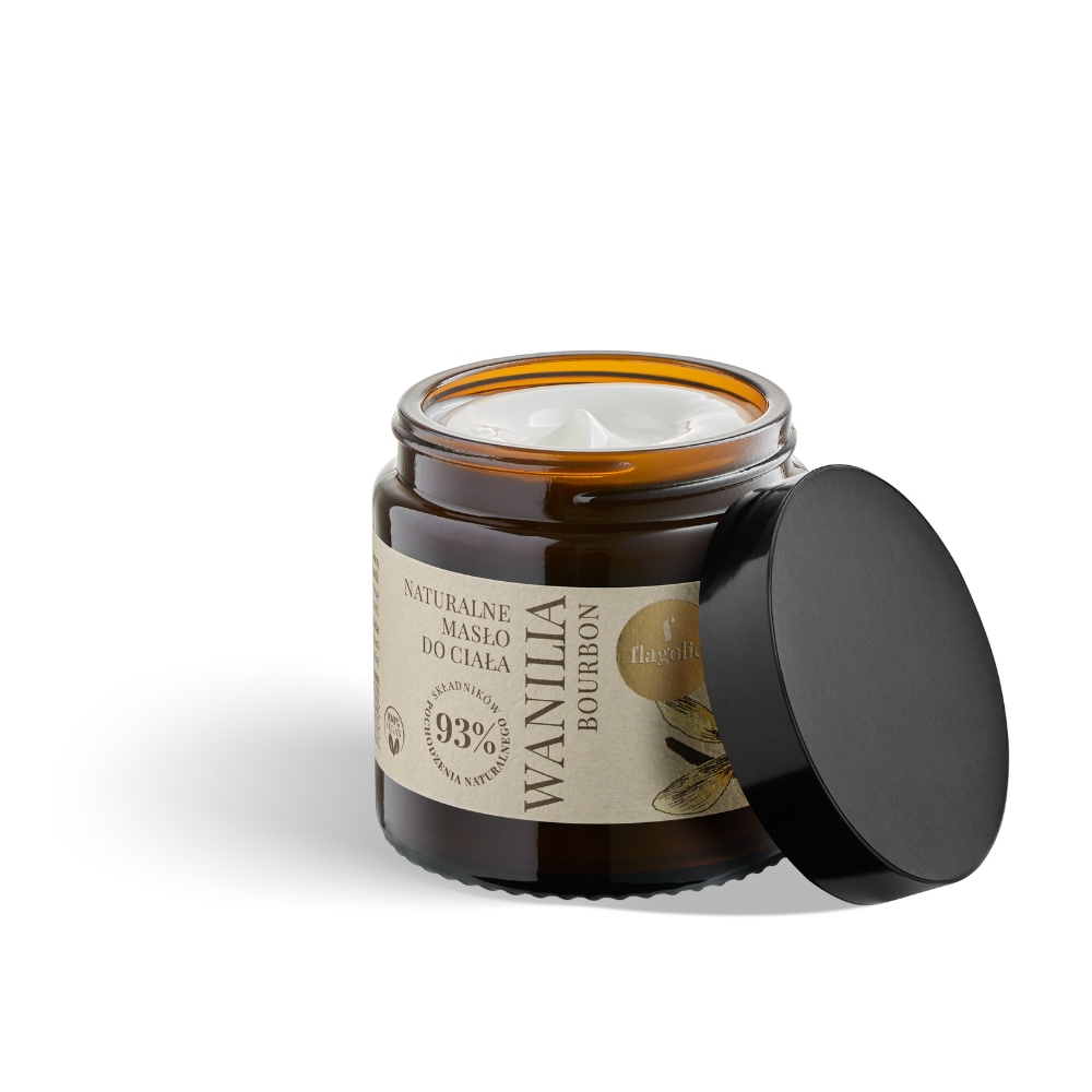 Regularne stosowanie masła do ciała Flagolie pozwala utrzymać optymalny poziom nawodnienia skóry przez cały rok, chroniąc ją przed przesuszeniem. Naturalny skład oparty w 93% na komponentach pochodzenia roślinnego gwarantuje bezpieczną pielęgnację nawet dla bardzo wymagającej cery. Masło doskonale sprawdza się jako ratunek dla suchej skóry po kąpieli, a także jako intensywna regeneracja po ekspozycji na słońce lub mróz. Wegańska formuła oraz ekologiczne opakowanie to wyraz troski o środowisko i Twoje ciało. Słodki, luksusowy zapach wanilii bourbon długo utrzymuje się na skórze, działając uspokajająco, co sprawia, że produkt jest doskonały na prezent dla bliskiej osoby.