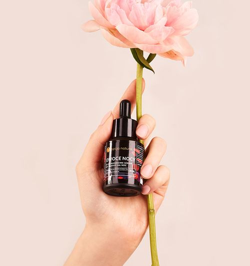 Serum Owoce nocy to prawdziwa bomba witaminowa o unikalnym, ciemnoczerwonym kolorze, który pochodzi prosto z natury – z ekstraktów z granatu, żurawiny i czerwonego wina. To naturalny skład stworzony z myślą o intensywnej nocnej regeneracji. Sercem receptury jest wysoce przyswajalna witamina C (Ethyl Ascorbic Acid), która w połączeniu z niacynamidem (witaminą B3) skutecznie uszczelnia naczynia krwionośne i wyrównuje koloryt skóry.