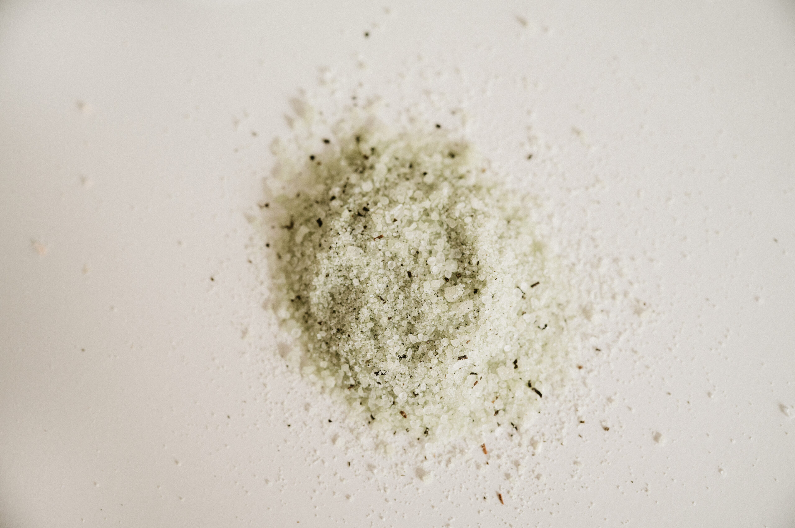 Odświeżająca sól do kąpieli: sól z Morza Martwego, sól Epsom, ekstrakt z zielonej herbaty, spirulina i olejek sosnowy