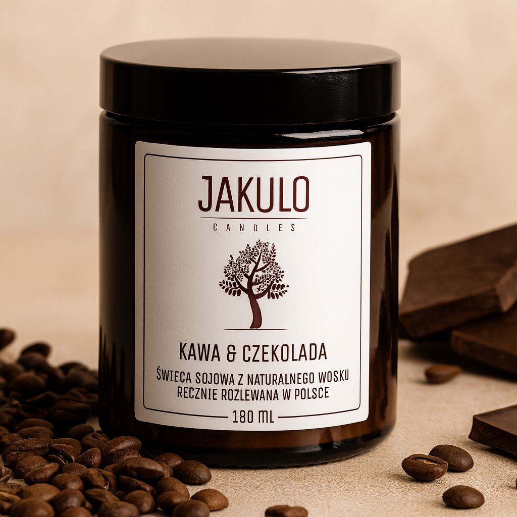 Wyobraź sobie leniwy poranek w sercu przytulnej kawiarni, gdzie zapach świeżo mielonych ziaren miesza się ze słodyczą aksamitnego deseru. Świeca sojowa Kawa i Czekolada marki Jakulo to esencja domowego komfortu zamknięta w eleganckim szkle. Każda chwila z tym aromatem to zmysłowa podróż przez nuty maślanej słodyczy, kokosa i złocistego karmelu. Dzięki naturalnemu woskowi sojowemu produkt uwalnia swój deserowy aromat czysto i powoli, otulając wnętrze ciepłem wanilii i piżma. To nie tylko zapach, ale rytuał przyjemności, stworzony ręcznie z pasji do pięknych chwil. Idealna dla wielbicieli nut gourmand, którzy pragną celebrować codzienność w wyjątkowym, butikowym stylu.