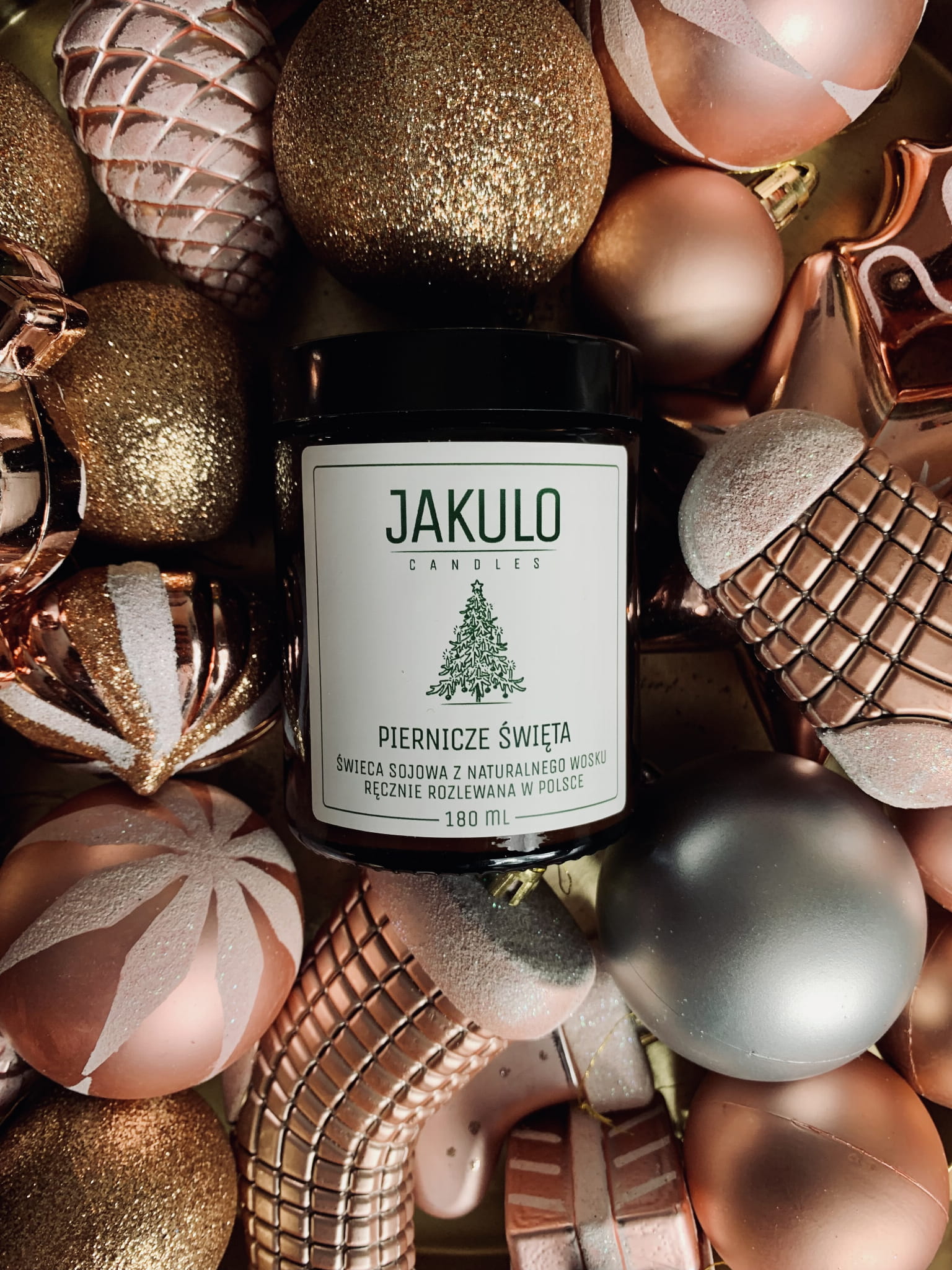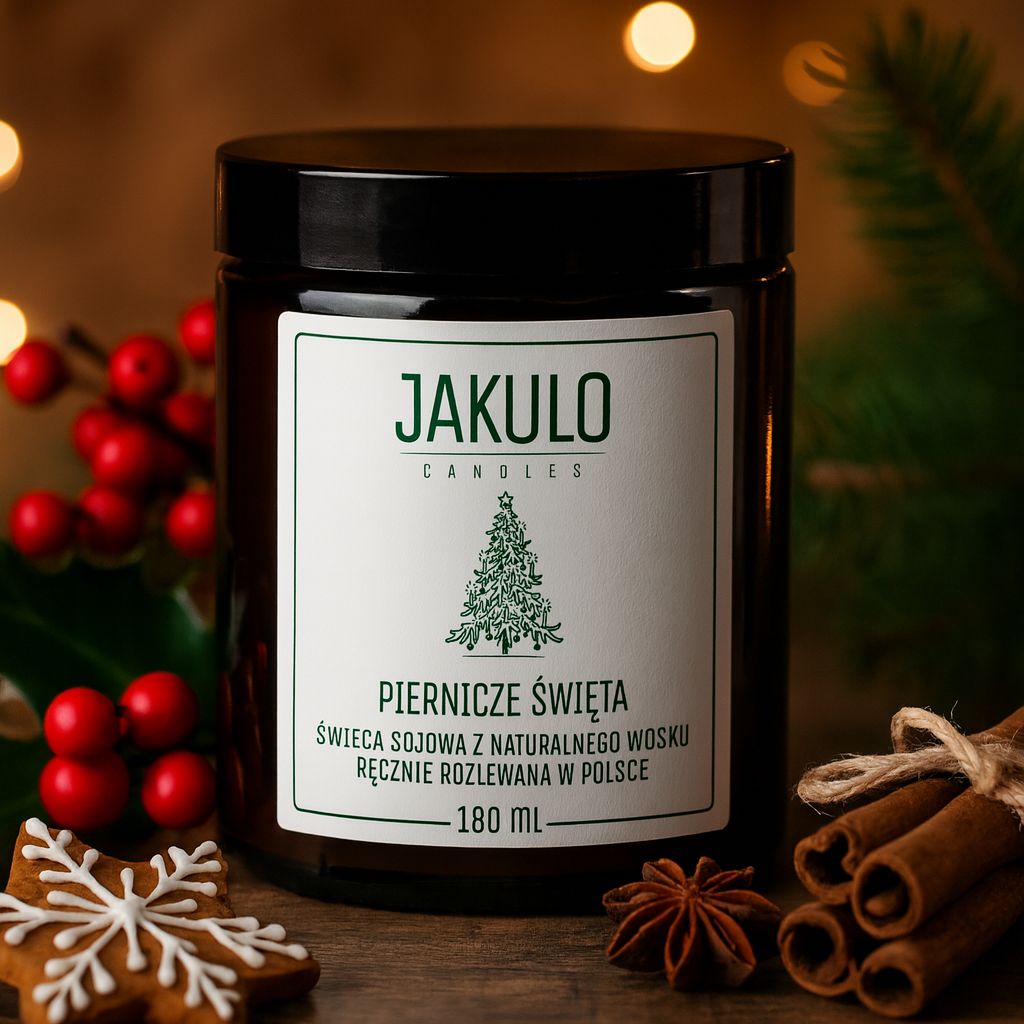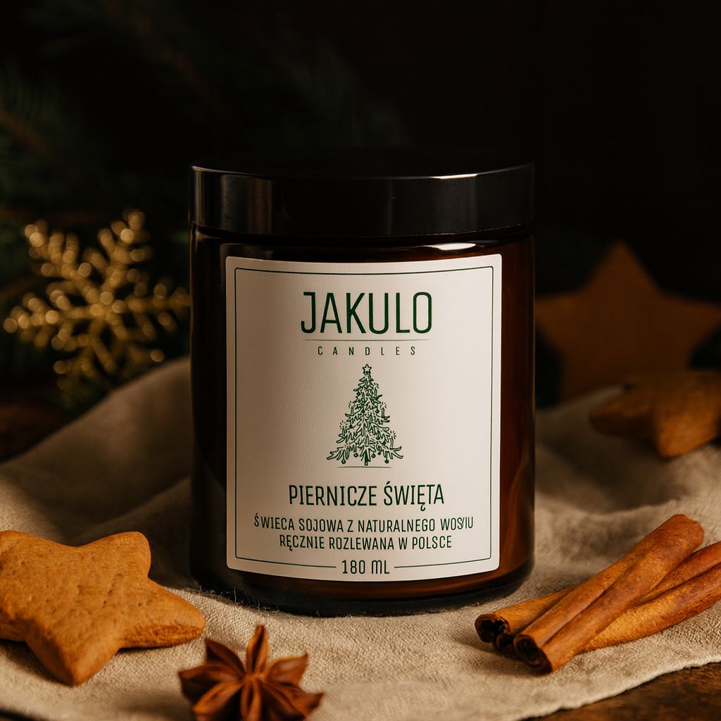 Poczuj magię świątecznych wypieków, która wypełnia dom błogim spokojem i ciepłem. Świeca sojowa Piernicze Święta od polskiej manufaktury Jakulo to zaproszenie do świata najpiękniejszych wspomnień. Wyobraź sobie mroźny wieczór i zapach świeżo upieczonych pierników z nutą cynamonu oraz anyżu, który delikatnie otula Twoje zmysły.