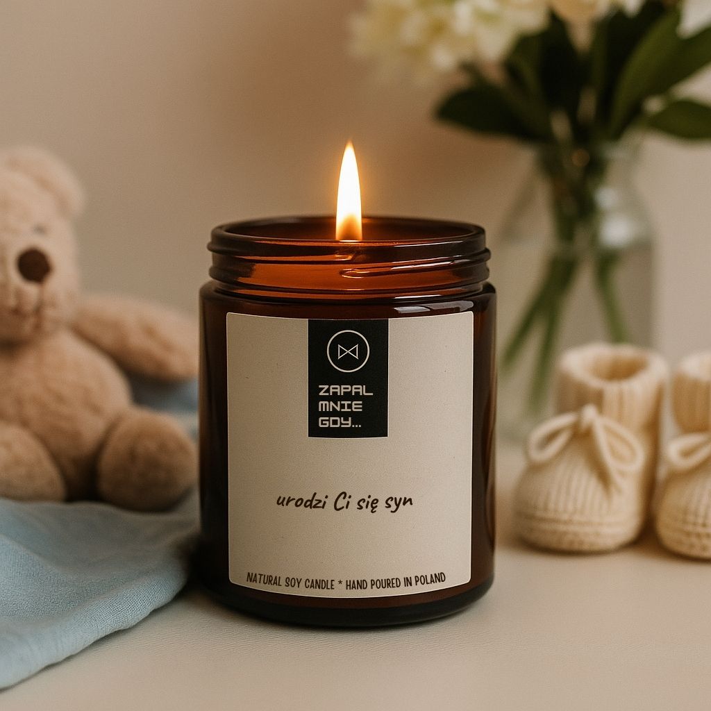Aromatyczna świeca z radosną nowiną, która otuli dom wybranym zapachem. To idealny prezent celebrujący narodziny syna i tworzący atmosferę pełną czułości. Poczuj magię tych wyjątkowych chwil!