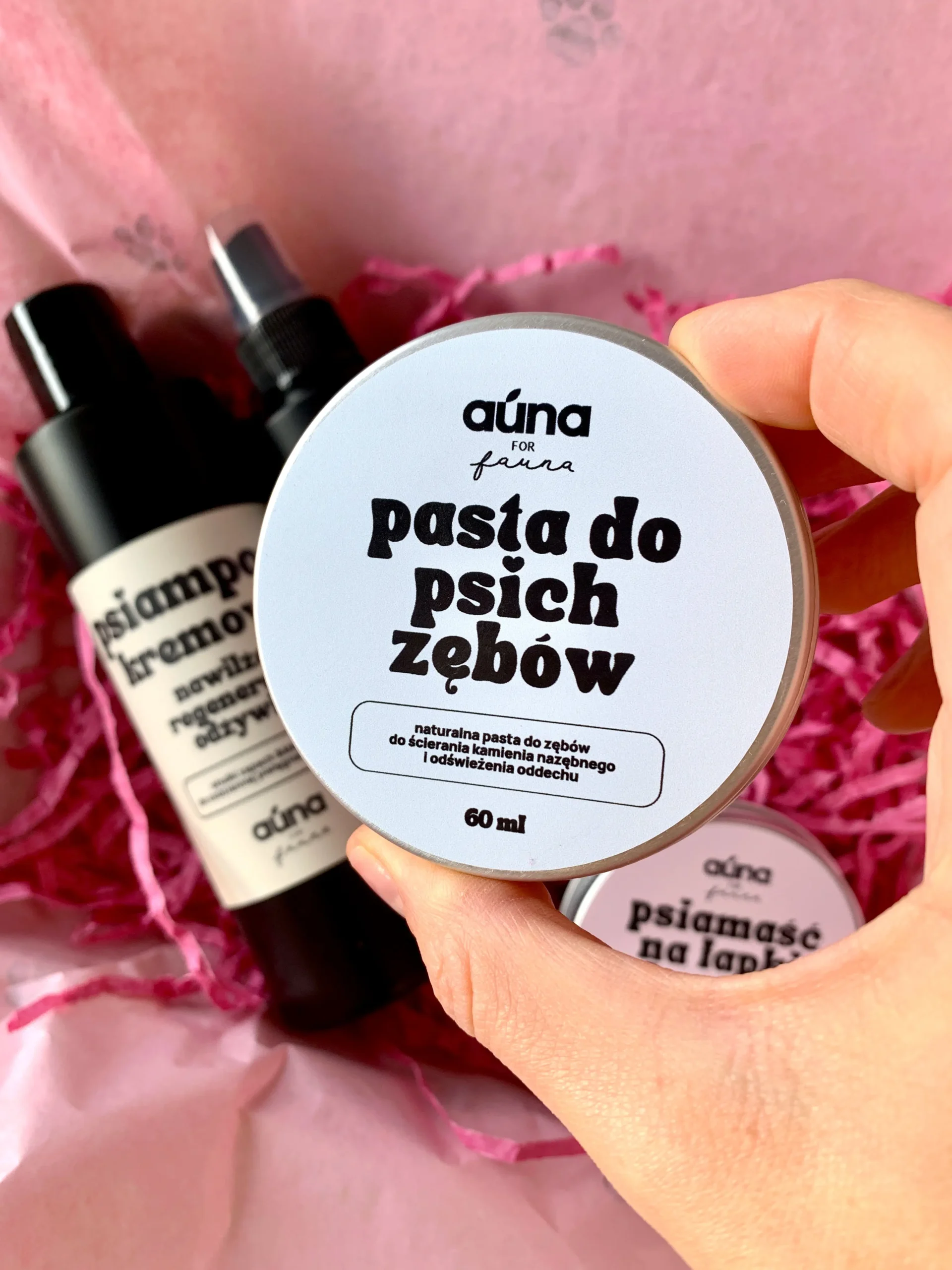 - Pasta do psich zębów (30 ml): Naturalny sposób na zdrowy uśmiech, usuwający osad i dbający o świeży oddech.