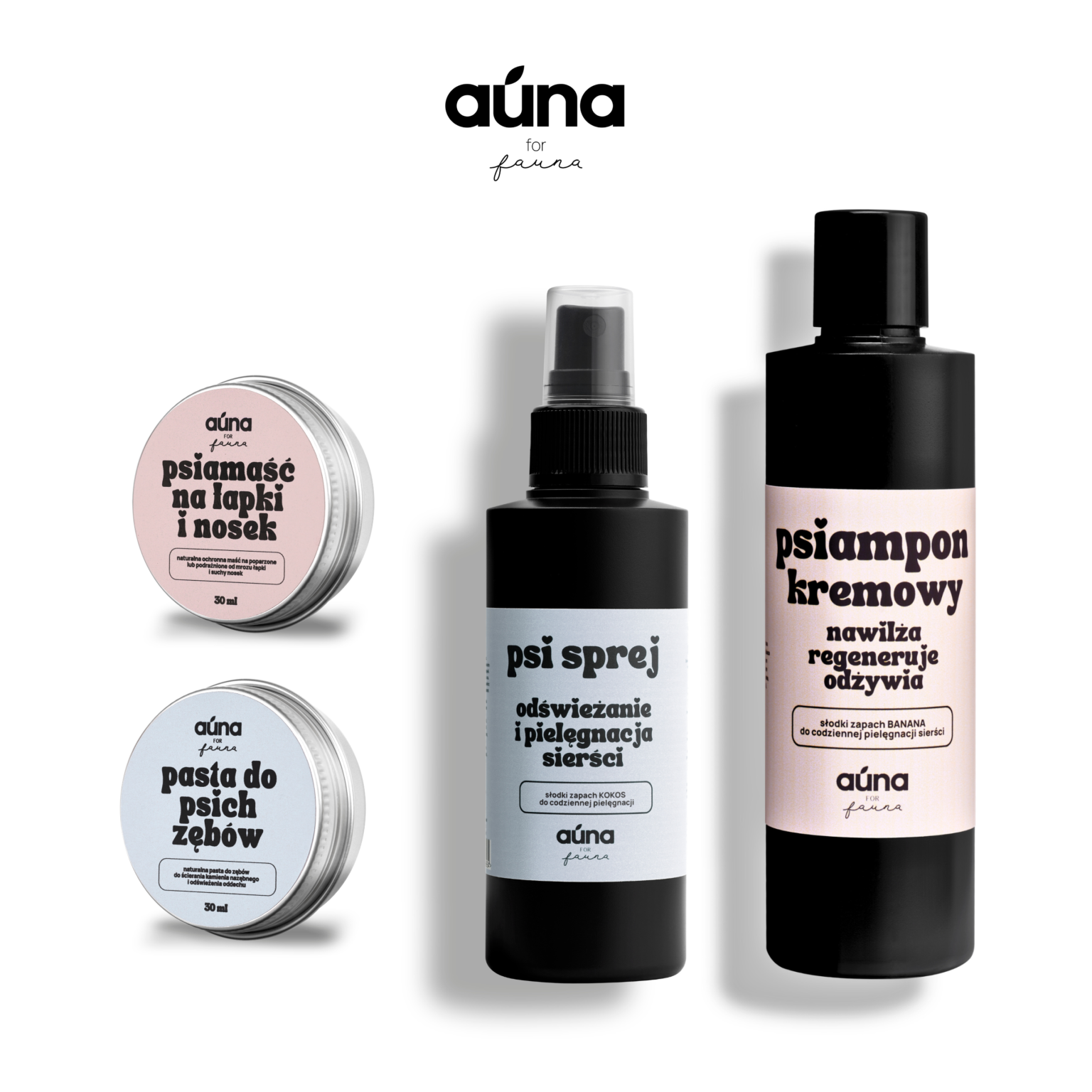 Twój czworonożny przyjaciel zasługuje na luksus, który płynie prosto z natury. Wyobraź sobie chwilę, w której codzienna pielęgnacja zmienia się w kojący rytuał pełen czułości. Wyjątkowy Zestaw Psie Sprawunki (4 produkty) od marki Auna Vegan to kompletna odpowiedź na potrzeby Twojego pupila. Słodki aromat banana otula podczas kąpieli, a kokosowa mgiełka ułatwia czesanie, nadając sierści niespotykany blask. Zadbasz nie tylko o czystość, ale też o ochronę łapek i higienę uśmiechu psa. To rzemieślnicze receptury stworzone z pasji, zamknięte w eleganckim pudełku idealnym na prezent. Podaruj swojemu psiakowi domowe spa, które pielęgnuje z miłością.